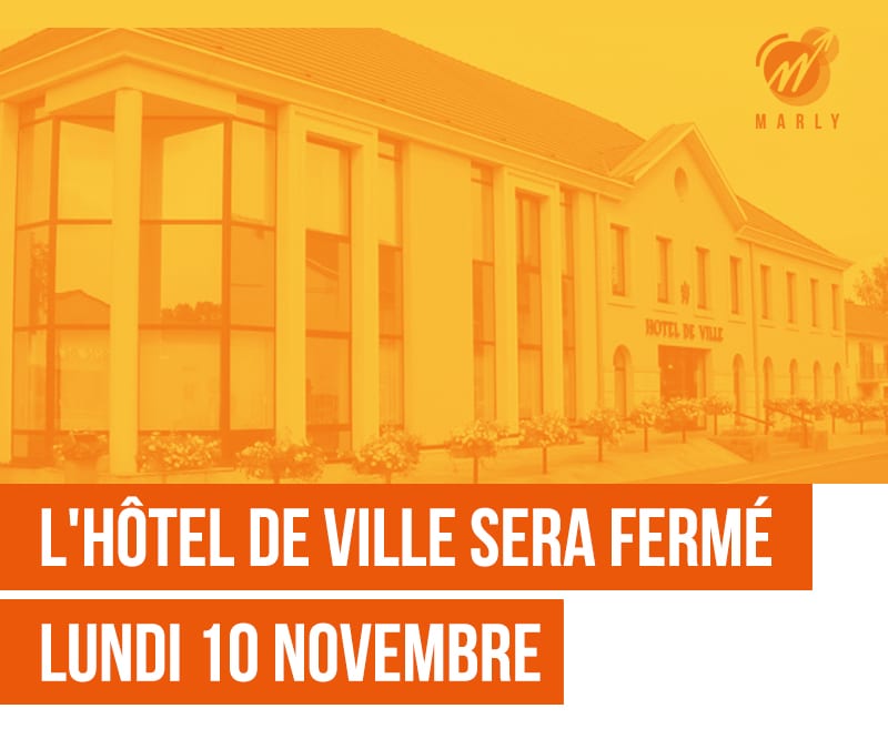 L’hôtel de ville sera exceptionnellement fermé lundi 10 novembre. Il rouvrira ses portes mercredi 12 novembre aux horaires habituels.