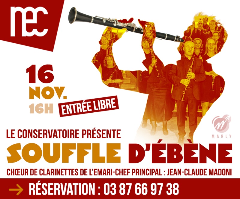 Le chœur de clarinettes Souffle d’Ebène, dirigé par Jean-Claude Madoni, ouvre sa 27ème saison au NEC, samedi 16 novembre prochain à 16h !