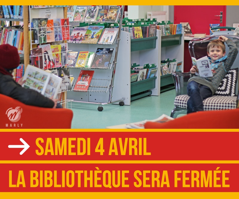 La bibliothèque municipale sera exceptionnellement fermée le samedi 4 avril. Elle rouvrira ses portes aux horaires habituels le mardi 7 avril.