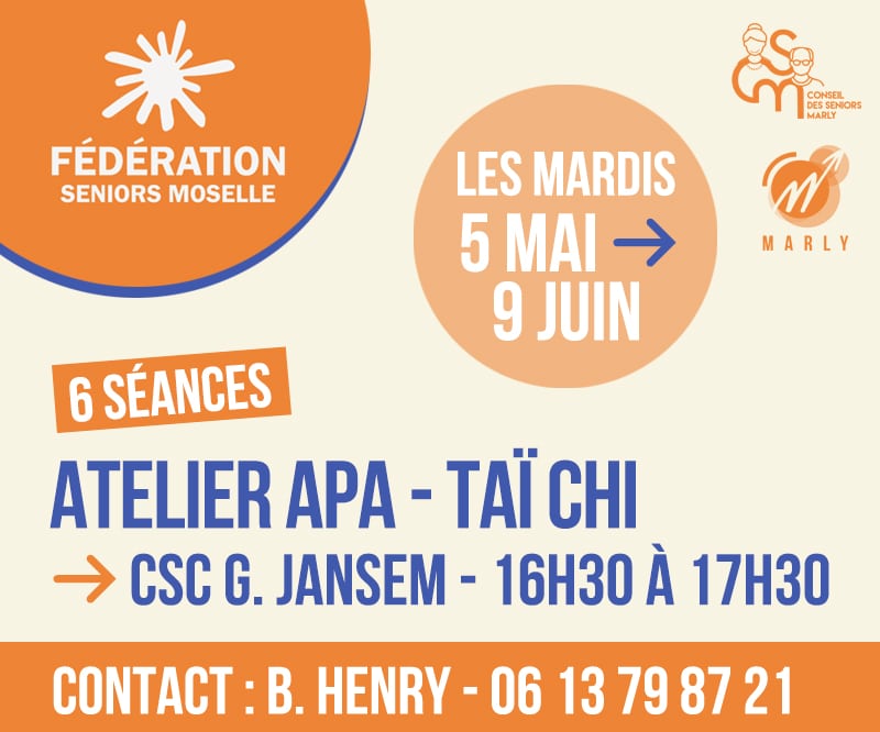 Organisés en partenariat avec le Conseil des séniors de Marly 57, venez découvrir ou pratiquer le Taï Chi, lors de stages proposés au Centre socio-culturel Gilbert Jansem du 5 mai au 9 juin.