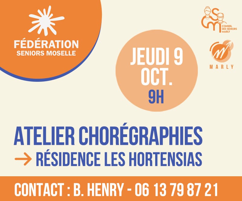 Dans le cadre de la Semaine Bleue, le conseil des séniors organise un atelier « chorégraphies séniors » le 9 octobre prochain à 9h à la résidence autonomie Les Hortensias.