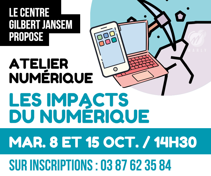 Le centre socio-culturel Gilbert Jansem, en partenariat avec Flavien Collet, conseiller numérique France Services, vous propose de participer à un nouvel atelier numérique sur le thème « les impacts du numérique », sur 2 séances : les mardis 8 et 15 octobre à 14h30.