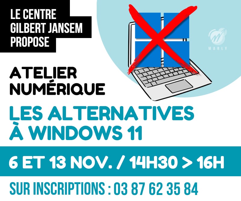 En partenariat avec France Services, Flavien Collet, conseiller numérique au Centre Socio-Culturel Gilbert Jansem, vous propose de participer à un nouvel atelier numérique sur le thème « les alternatives à windows 11 » : les jeudis 6 et 13 novembre de 14h30 à 16h.