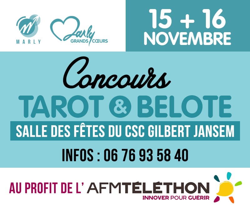 L’association Marly Jeux de Cartes organise deux concours en faveur de l’AFM Téléthon dans la salle des fêtes du CSC Gilbert Jansem :