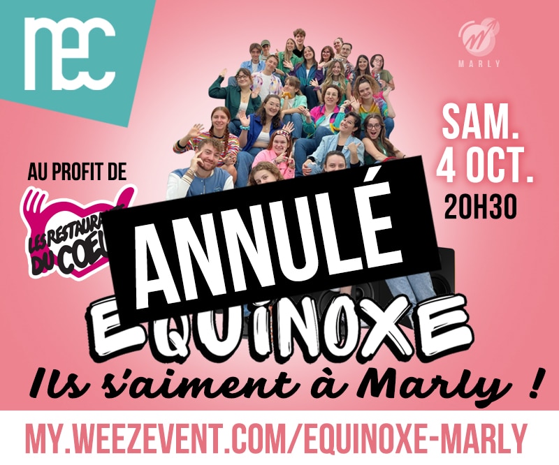 Le spectacle du groupe EQUINOXE qui devait avoir lieu ce samedi 4 octobre au NEC est malheureusement annulé !