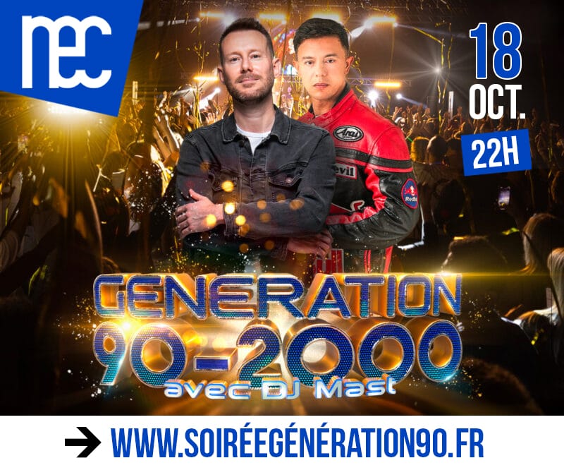 Samedi 18 octobre, le Nec accueille DJ MAST et le chanteur iconique des années 2000 : Amine et ses tubes J’voulais, Sobri, Señorita… Dès 22h, venez profiter du meilleur des années 90 et 2000 !